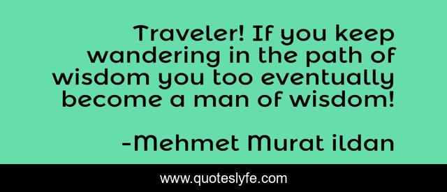 This page presents the quote "Traveler! If you keep wandering in the path of wisdom you too eventually become a man of wisdom!". Author of this quote is Mehmet Murat ildan. This quote is about passenger, murat-ildan, traveller, wisdom, man-of-wisdom, turkish-writers, path, wise-man,.
