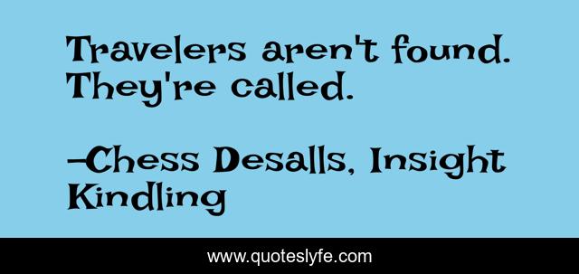"Chess Desalls, Insight Kindling Quotes." Quoteslyfe.com, 2025. Sat. 06 Dec. 2025. <https://www.quoteslyfe.com/quote/Travelers-aren-t-found-They-re-called-82877>.