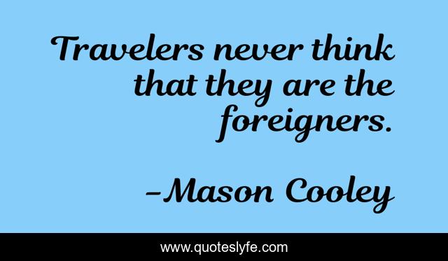 This page presents the quote "Travelers never think that they are the foreigners.". Author of this quote is Mason Cooley. This quote is about think, foreigners,.