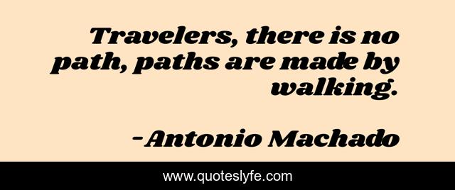 This page presents the quote "Travelers, there is no path, paths are made by walking.". Author of this quote is Antonio Machado. .