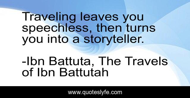 "Ibn Battuta, The Travels of Ibn Battutah Quotes." Quoteslyfe.com, 2025. Mon. 08 Dec. 2025. <https://www.quoteslyfe.com/quote/Traveling-leaves-you-speechless-then-turns-you-100530>.