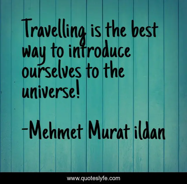 This page presents the quote "Travelling is the best way to introduce ourselves to the universe!". Author of this quote is Mehmet Murat ildan. This quote is about mehmet-murat-ildan, turkish, travel, turkish-writers, turkish-literature, travelling,.