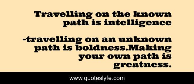 "travelling on an unknown path is boldness.Making your own path is greatness. Quotes." Quoteslyfe.com, 2025. Fri. 05 Dec. 2025. <https://www.quoteslyfe.com/quote/Travelling-on-the-known-path-is-intelligence-189973>.