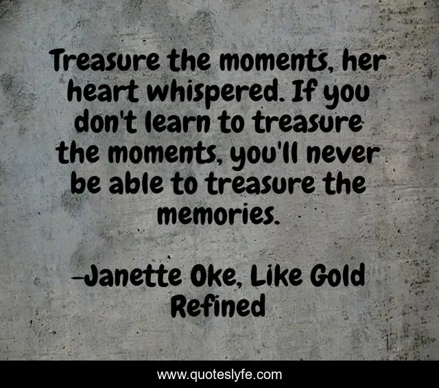 "Janette Oke, Like Gold Refined Quotes." Quoteslyfe.com, 2025. Tue. 09 Dec. 2025. <https://www.quoteslyfe.com/quote/Treasure-the-moments-her-heart-whispered-If-147053>.