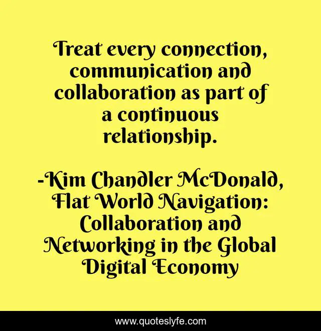 "Kim Chandler McDonald, Flat World Navigation: Collaboration and Networking in the Global Digital Economy Quotes." Quoteslyfe.com, 2025. Fri. 05 Dec. 2025. <https://www.quoteslyfe.com/quote/Treat-every-connection-communication-and-collaboration-as-237501>.