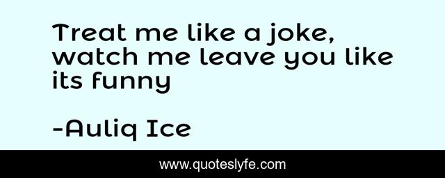 This page presents the quote "Treat me like a joke, watch me leave you like its funny". Author of this quote is Auliq Ice. This quote is about breakup, complicated-relationship, comedy, funny, jokes,.