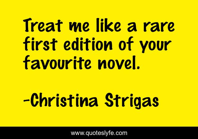 "Christina Strigas Quotes." Quoteslyfe.com, 2025. Fri. 05 Dec. 2025. <https://www.quoteslyfe.com/quote/Treat-me-like-a-rare-first-edition-49398>.