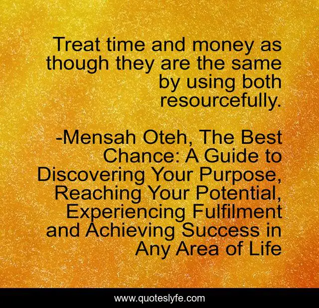 "Mensah Oteh, The Best Chance: A Guide to Discovering Your Purpose, Reaching Your Potential, Experiencing Fulfilment and Achieving Success in Any Area of Life Quotes." Quoteslyfe.com, 2025. Mon. 08 Dec. 2025. <https://www.quoteslyfe.com/quote/Treat-time-and-money-as-though-they-48936>.