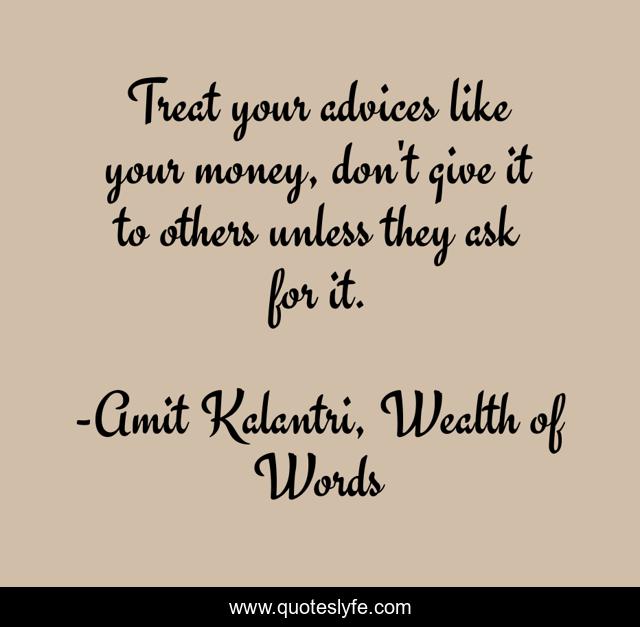 "Amit Kalantri, Wealth of Words Quotes." Quoteslyfe.com, 2025. Fri. 05 Dec. 2025. <https://www.quoteslyfe.com/quote/Treat-your-advices-like-your-money-don-147382>.