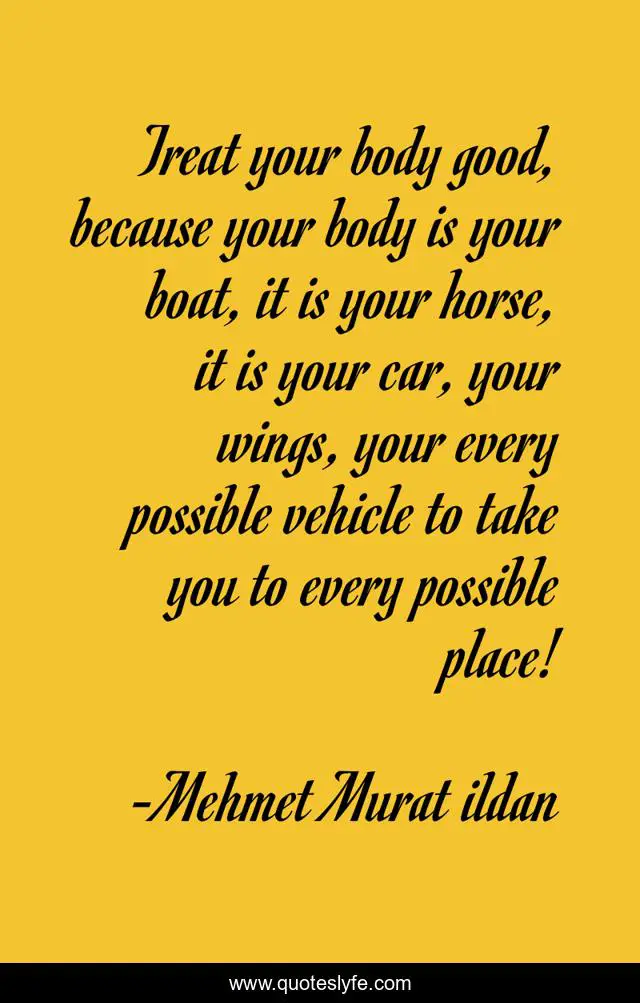 This page presents the quote "Treat your body good, because your body is your boat, it is your horse, it is your car, your wings, your every possible vehicle to take you to every possible place!". Author of this quote is Mehmet Murat ildan. .