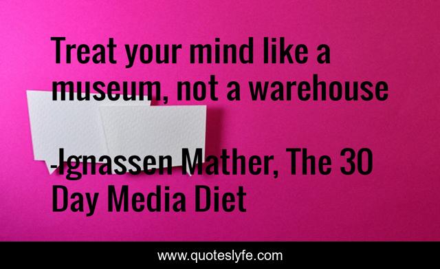 "Ignassen Mather, The 30 Day Media Diet Quotes." Quoteslyfe.com, 2025. Sun. 07 Dec. 2025. <https://www.quoteslyfe.com/quote/Treat-your-mind-like-a-museum-not-111870>.