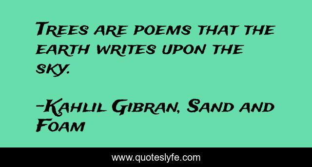 "Kahlil Gibran, Sand and Foam Quotes." Quoteslyfe.com, 2025. Fri. 05 Dec. 2025. <https://www.quoteslyfe.com/quote/Trees-are-poems-that-the-earth-writes-192414>.