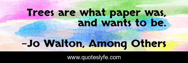 "Jo Walton, Among Others Quotes." Quoteslyfe.com, 2025. Fri. 05 Dec. 2025. <https://www.quoteslyfe.com/quote/Trees-are-what-paper-was-and-wants-256887>.