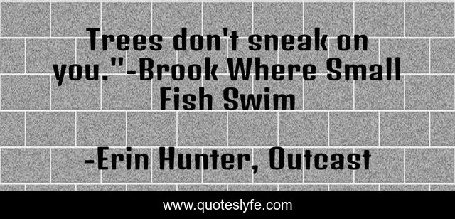 This page presents the quote "Trees don't sneak on you."-Brook Where Small Fish Swim". Author of this quote is Erin Hunter, Outcast. This quote is about warrior-cats, brook, night,.