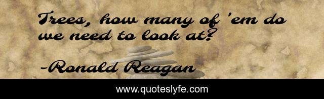 This page presents the quote "Trees, how many of 'em do we need to look at?". Author of this quote is Ronald Reagan. This quote is about deforestation, trees,.
