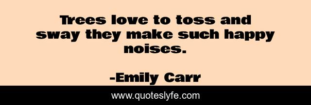This page presents the quote "Trees love to toss and sway they make such happy noises.". Author of this quote is Emily Carr. This quote is about love, trees, affection, happy,.