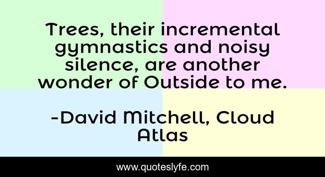 "David Mitchell, Cloud Atlas Quotes." Quoteslyfe.com, 2025. Fri. 05 Dec. 2025. <https://www.quoteslyfe.com/quote/Trees-their-incremental-gymnastics-and-noisy-silence-256867>.