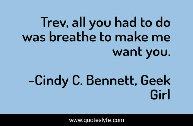 This page presents the quote "Trev, all you had to do was breathe to make me want you.". Author of this quote is Cindy C. Bennett, Geek Girl. .