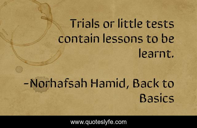 "Norhafsah Hamid, Back to Basics Quotes." Quoteslyfe.com, 2025. Fri. 05 Dec. 2025. <https://www.quoteslyfe.com/quote/Trials-or-little-tests-contain-lessons-to-249259>.