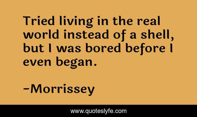 This page presents the quote "Tried living in the real world instead of a shell, but I was bored before I even began.". Author of this quote is Morrissey. This quote is about humor, life, music, lyrics,.