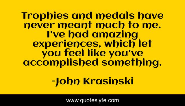 This page presents the quote "Trophies and medals have never meant much to me. I've had amazing experiences, which let you feel like you've accomplished something.". Author of this quote is John Krasinski. This quote is about me, experiences,.