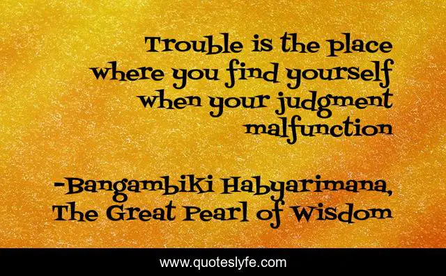 "Bangambiki Habyarimana, The Great Pearl of Wisdom Quotes." Quoteslyfe.com, 2025. Fri. 05 Dec. 2025. <https://www.quoteslyfe.com/quote/Trouble-is-the-place-where-you-find-230951>.
