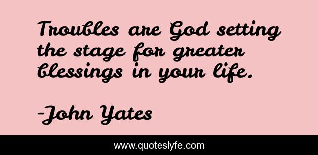 This page presents the quote "Troubles are God setting the stage for greater blessings in your life.". Author of this quote is John Yates. This quote is about john-yates, blessings, troubles,.