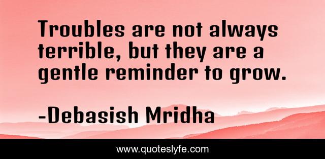 "Debasish Mridha Quotes." Quoteslyfe.com, 2025. Fri. 05 Dec. 2025. <https://www.quoteslyfe.com/quote/Troubles-are-not-always-terrible-but-they-206799>.