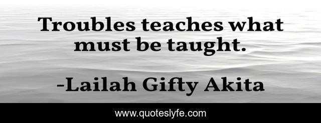 This page presents the quote "Troubles teaches what must be taught.". Author of this quote is Lailah Gifty Akita. This quote is about confidence, positive, motivational, troubles, dont-quit, optimistic, life-lessons, difficulties-of-life,.