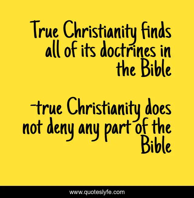 This page presents the quote "True Christianity finds all of its doctrines in the Bible". Author of this quote is true Christianity does not deny any part of the Bible. .