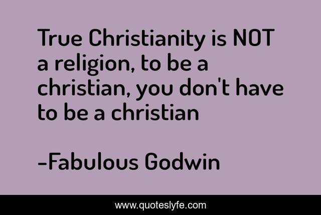 This page presents the quote "True Christianity is NOT a religion, to be a christian, you don't have to be a christian". Author of this quote is Fabulous Godwin. This quote is about christian, religion-and-philoshophy, christianity,.
