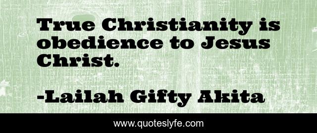 This page presents the quote "True Christianity is obedience to Jesus Christ.". Author of this quote is Lailah Gifty Akita. This quote is about jesus-christ, living-faith, obey-god, obedience, christianity,.
