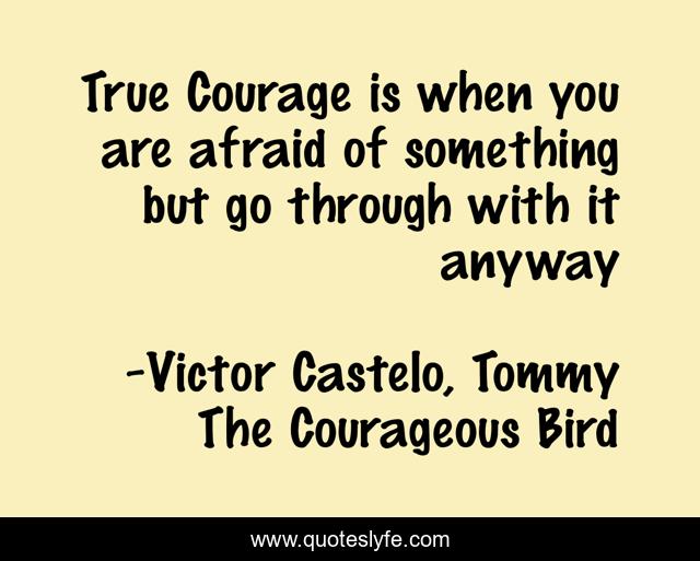 "Victor Castelo, Tommy The Courageous Bird Quotes." Quoteslyfe.com, 2025. Sat. 06 Dec. 2025. <https://www.quoteslyfe.com/quote/True-Courage-is-when-you-are-afraid-100247>.