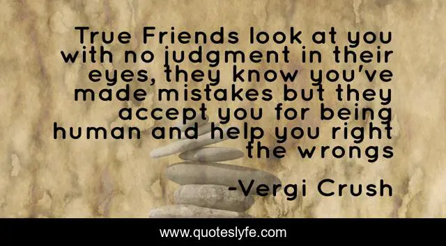 True Friends look at you with no judgment in their eyes, they know you've made mistakes but they accept you for being human and help you right the wrongs