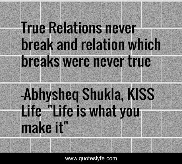 "Abhysheq Shukla, KISS Life "Life is what you make it" Quotes." Quoteslyfe.com, 2025. Fri. 05 Dec. 2025. <https://www.quoteslyfe.com/quote/True-Relations-never-break-and-relation-which-81684>.