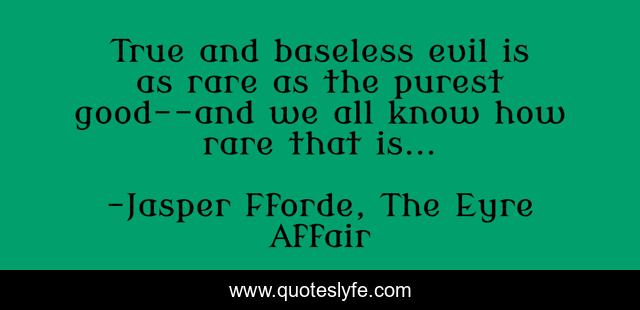 "Jasper Fforde, The Eyre Affair Quotes." Quoteslyfe.com, 2025. Fri. 05 Dec. 2025. <https://www.quoteslyfe.com/quote/True-and-baseless-evil-is-as-rare-154025>.