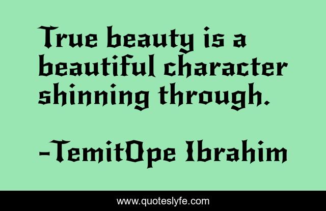 "TemitOpe Ibrahim Quotes." Quoteslyfe.com, 2025. Tue. 09 Dec. 2025. <https://www.quoteslyfe.com/quote/True-beauty-is-a-beautiful-character-shinning-173629>.