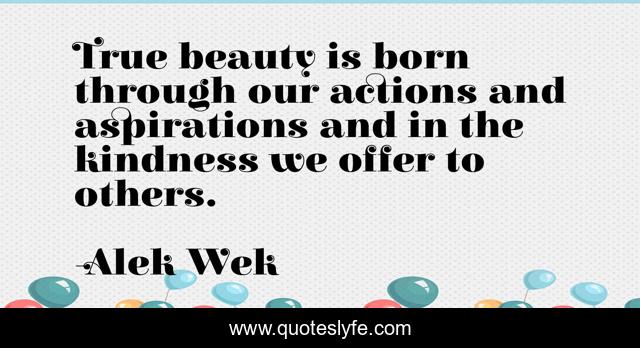 This page presents the quote "True beauty is born through our actions and aspirations and in the kindness we offer to others.". Author of this quote is Alek Wek. This quote is about born, kindness, true,.