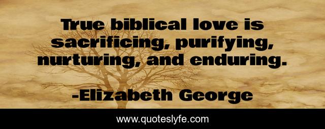 This page presents the quote "True biblical love is sacrificing, purifying, nurturing, and enduring.". Author of this quote is Elizabeth George. This quote is about faith, bible, christian, biblical, god, sacrifice, endure, pure, love,.