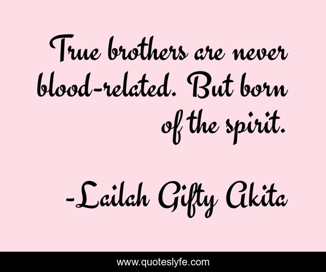 "Lailah Gifty Akita Quotes." Quoteslyfe.com, 2025. Sat. 06 Dec. 2025. <https://www.quoteslyfe.com/quote/True-brothers-are-never-blood-related-But-84603>.