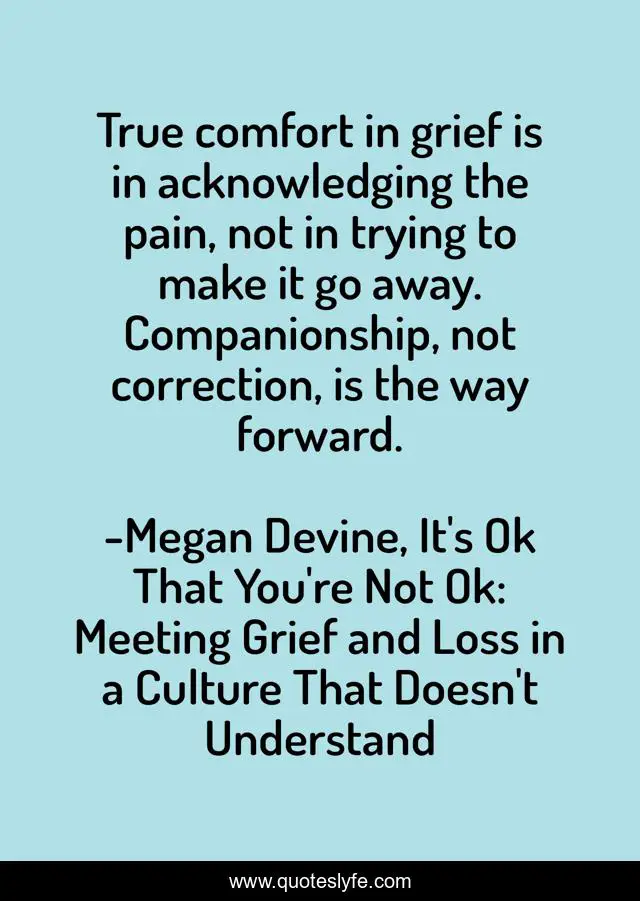 "Megan Devine, It's Ok That You're Not Ok: Meeting Grief and Loss in a Culture That Doesn't Understand Quotes." Quoteslyfe.com, 2025. Sat. 06 Dec. 2025. <https://www.quoteslyfe.com/quote/True-comfort-in-grief-is-in-acknowledging-19796>.