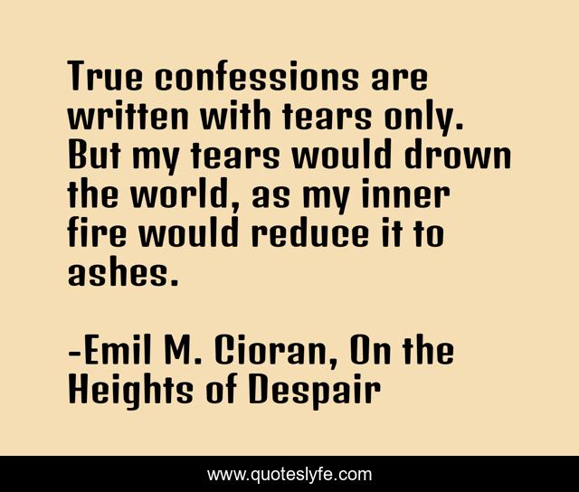 "Emil M. Cioran, On the Heights of Despair Quotes." Quoteslyfe.com, 2025. Fri. 05 Dec. 2025. <https://www.quoteslyfe.com/quote/True-confessions-are-written-with-tears-only-124922>.