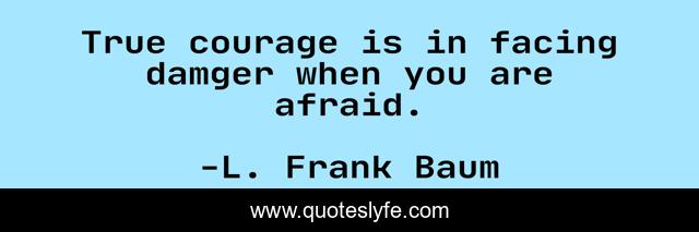 This page presents the quote "True courage is in facing damger when you are afraid.". Author of this quote is L. Frank Baum. This quote is about fear, courage, danger,.