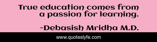 This page presents the quote "True education comes from a passion for learning.". Author of this quote is Debasish Mridha M.D.. This quote is about passion-for-learning, mridha, debasish, debasish-mridha, education,.