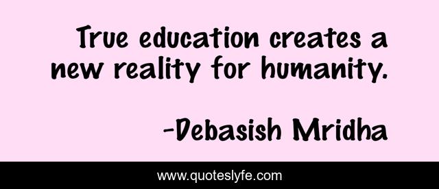 This page presents the quote "True education creates a new reality for humanity.". Author of this quote is Debasish Mridha. This quote is about true-education, new-reality, philosophy, debasish-mridha, debasish-mridha-m-d, quotes, inspirational, enthusiasm, education,.