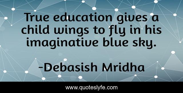 This page presents the quote "True education gives a child wings to fly in his imaginative blue sky.". Author of this quote is Debasish Mridha. This quote is about imagination, philosophy, debasish-mridha, educating-a-child, quotes, inspirational, enthusiasm, education, debasish-mridha-m-d,.