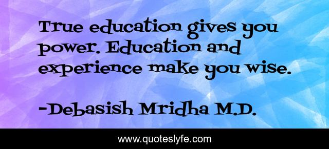 This page presents the quote "True education gives you power. Education and experience make you wise.". Author of this quote is Debasish Mridha M.D.. This quote is about education-gives-you-power, power, philosophy, debasish-mridha, experience, wisdom, quotes, wise, inspirational,.