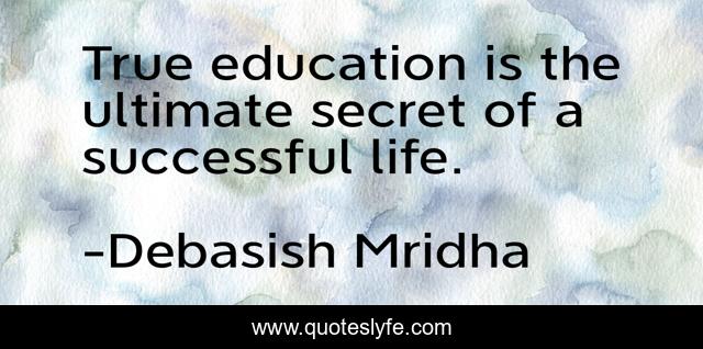 This page presents the quote "True education is the ultimate secret of a successful life.". Author of this quote is Debasish Mridha. This quote is about true-education, philosophy, debasish-mridha, successful-life, debasish-mridha-m-d, quotes, inspirational, enthusiasm, education,.