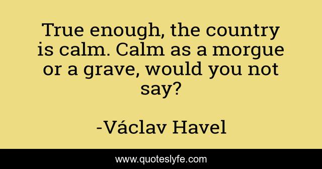 This page presents the quote "True enough, the country is calm. Calm as a morgue or a grave, would you not say?". Author of this quote is Václav Havel. .