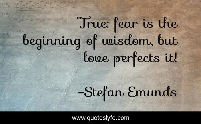 This page presents the quote "True: fear is the beginning of wisdom, but love perfects it!". Author of this quote is Stefan Emunds. This quote is about heart, bible, love, spirituality, wisdom, religion, inspirational, enthusiasm, fear,.